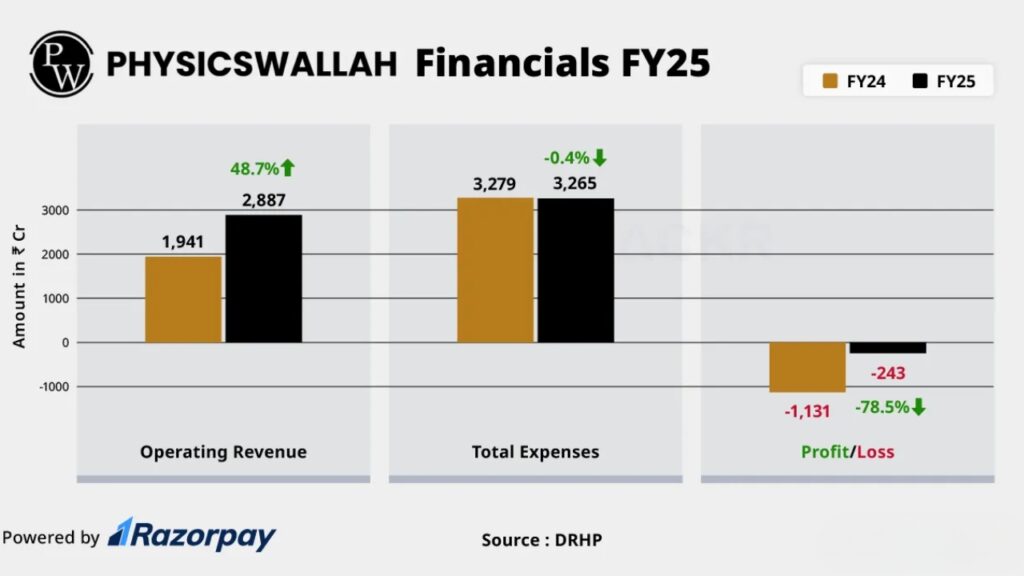 For FY25, revenues stood at ₹2,887 crore versus ₹1,941 crore in FY24. Pre-IPO net losses narrowed to ₹243 crore, compared to ₹1,131 crore for FY24.